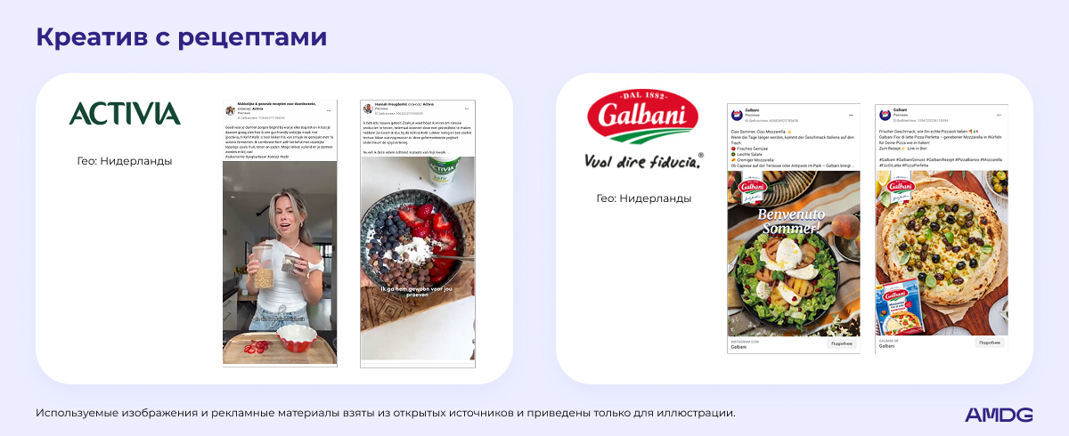 Специалисты AMDG рекомендуют тестировать как простые, так и сложные рецепты, а также запускать несколько вариаций в одной кампании. Это поможет охватить более широкую аудиторию и показать варианты потребления продукта.