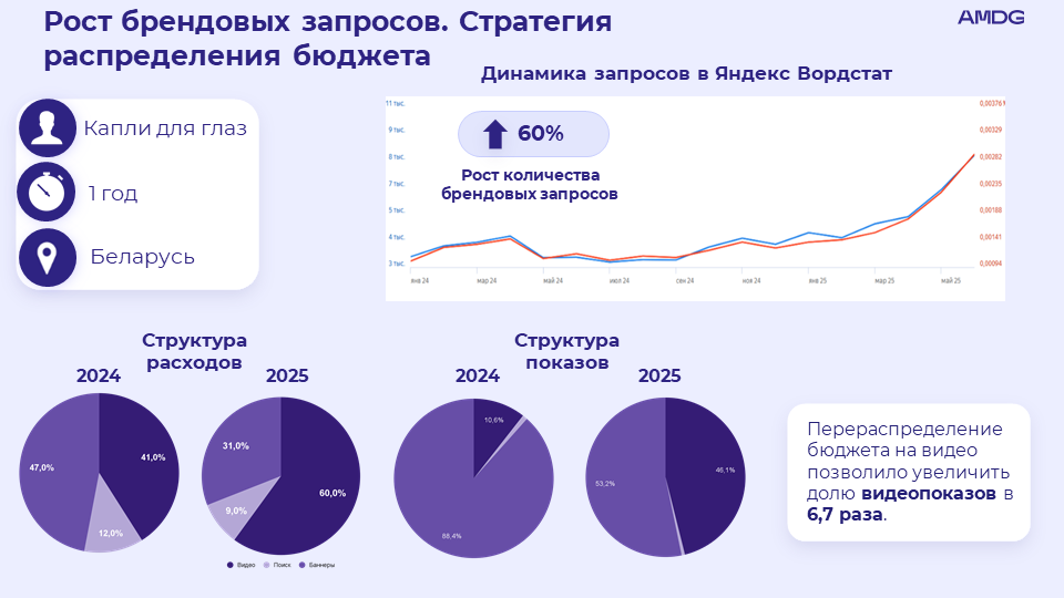 По итогам кампании количество брендовых запросов выросло на 60%, а доля видеопоказов увеличилась в 6,7 раза.