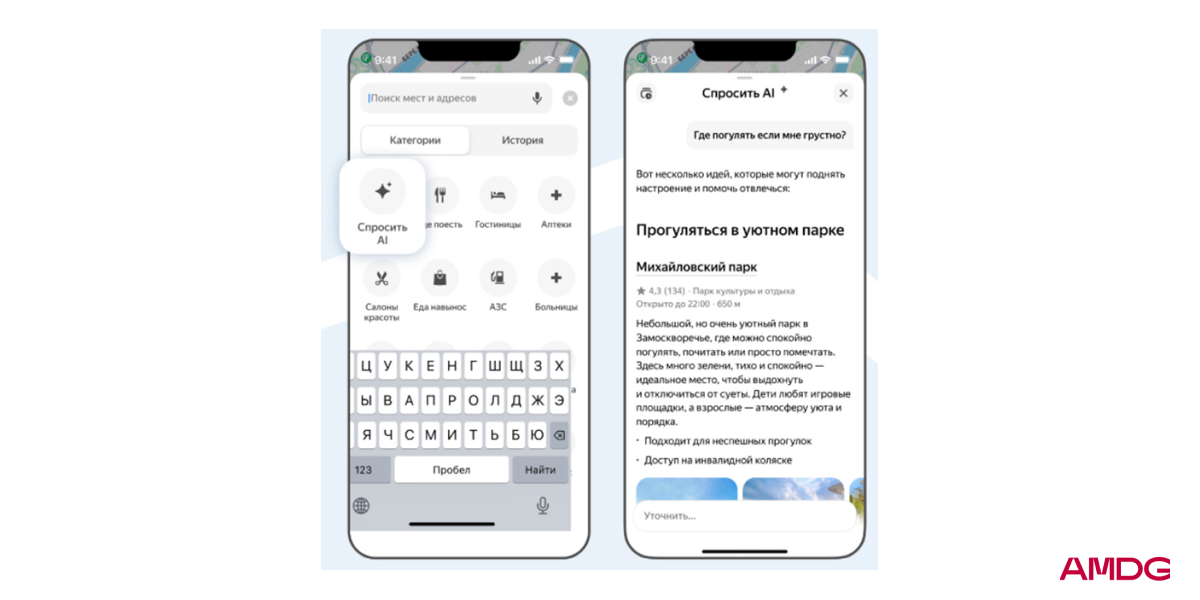 3. Яндекс запустил ИИ-чат в Яндекс Картах на базе Alice AI, который вызывается кнопкой “Спросить AI” в поисковой строке. Чат помогает планировать досуг: предлагает подборки парков, кафе, музеев и других мест, группирует варианты по категориям и учитывает контекст запроса. Он может составить маршрут прогулки или даже почасовой план поездки, а рекомендации легко уточнять в диалоге. Из ответов можно сразу перейти в карточки мест, посмотреть отзывы, фото и построить маршрут. В будущем ИИ планируют научить выполнять действия вроде бронирования и записи. Подробнее.