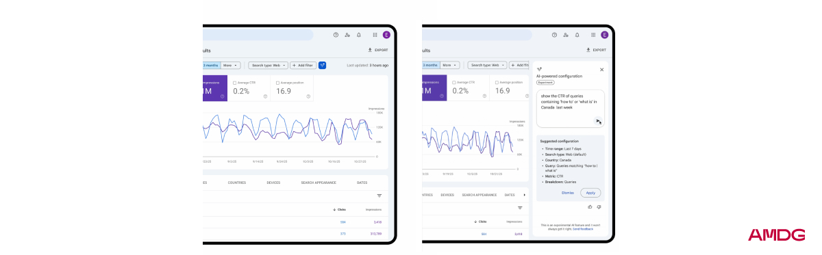 2. Google добавил ИИ-функцию в Search Console для отчета “Эффективность”, которая позволяет настраивать отчет с помощью обычного текстового запроса без ручного выбора фильтров и параметров. Теперь можно быстрее находить нужные данные, например страницы с просадкой трафика после конкретного апдейта, и сразу получать готовую выборку. У функции есть дневной лимит на количество запросов. Подробнее.