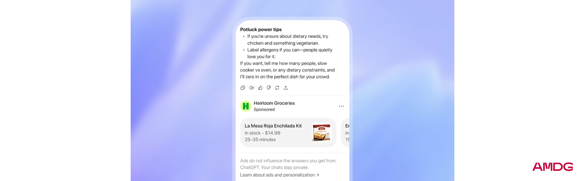 4. Реклама в ChatGPT уже внедрена для пользователей США с бесплатной подпиской и тарифом Go. OpenAI уверяет, что бренды с рекламой не будут появляться чаще в ответах: они все также останутся максимально объективными и полезными для пользователей. Блок визуально выделяется и появляется при обсуждении схожей темы в чате. Рекламодатели не увидят истории сообщений и данных о пользователях — только число просмотров и кликов. Подробнее.