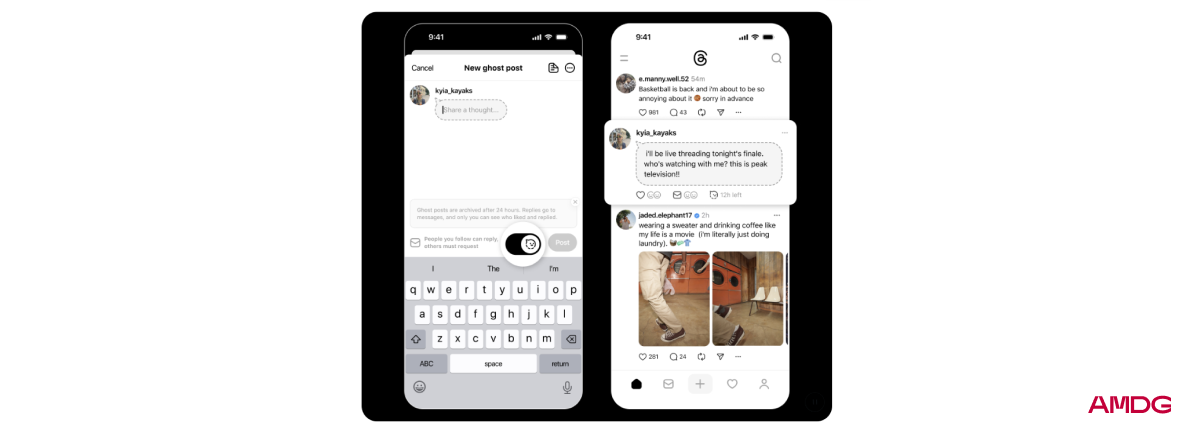 Threads представил новую функцию — исчезающие посты (ghost posts), которые автоматически удаляются через 24 часа. Такой формат позволяет пользователям делиться спонтанными мыслями без страха, что они останутся в ленте навсегда. Посты отмечаются иконкой “привидения”, а ответы на них приходят автору в личные сообщения. Подробнее.