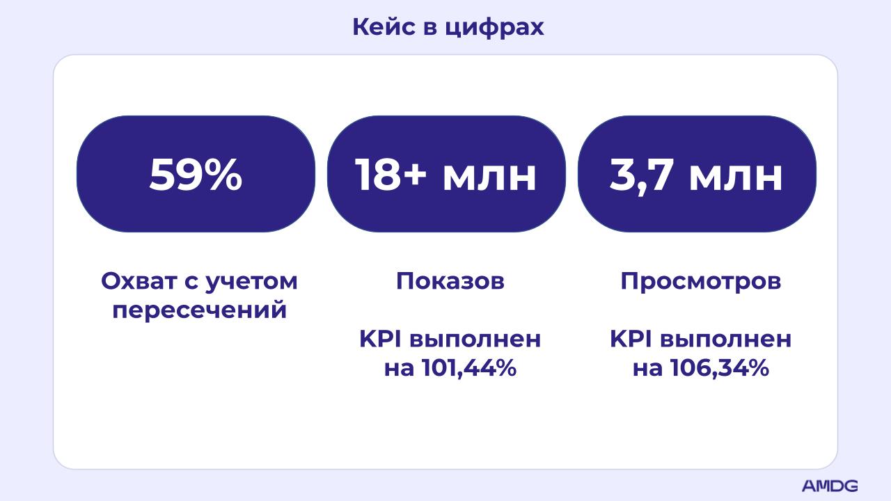 Такой подход позволил охватить более 18 млн пользователей и перевыполнить KPI по показам и просмотрам.