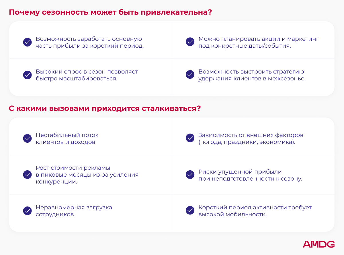 Как и любая модель, сезонный бизнес имеет свои преимущества и риски.